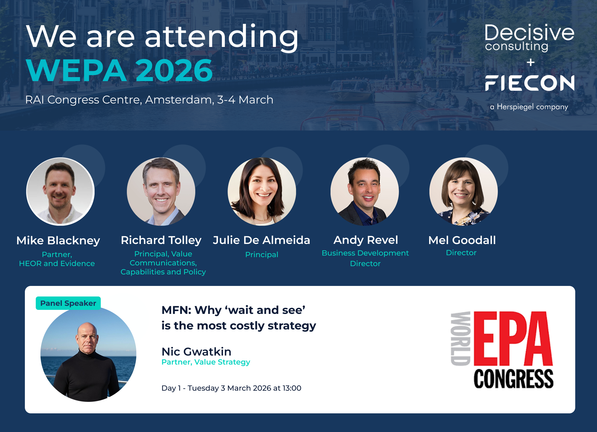 Nic Gwatkin, Partner will be presenting MFN, why wait and see is the most costly strategy, on Day 1 (3rd March) at 13:00 in the Market Access Auditorium